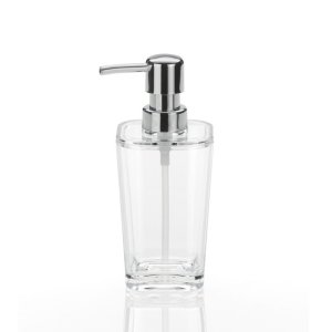 Elegantní dávkovač mýdla nebo dezinfekce vyrobený z kvalitního plastu s průhlednou nádobkou.