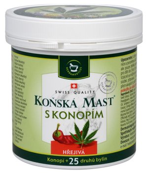 Koňská mast hřejivá s konopím je unikátní bylinný balzám s konopným extraktem a 25 druhy bylin a rostlin vyrobený podle tradiční, generacemi prověřené receptury.