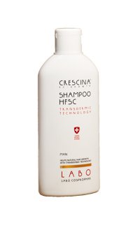 Speciální šampon Crescina Transdermic proti řídnutí vlasů obsahuje aktivní složky pro podporu růstu vlasů HFSC (cystein, lysin, glykoprotein, Stem-Engine).
