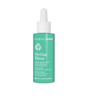 Bezoplachový zpevňující sprej s lehkou texturou s kolagenem, proteinovou molekulou schopnou zahušťovat a dodávat objem jemným vlasům a zvětšovat průměr vlasového stvolu.