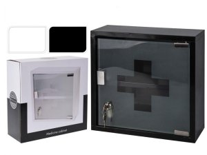 rozměry (Š x V x H): 30 x 30 x 12 cm nerezová ocel se skleněnými dvířky obsahuje 2 klíče bez výbavy barva: bílá, černá Nástěnná uzamykatelná lékárnička bez výbavy je vhodná pro umístění do koupelen či …