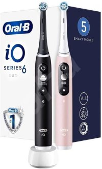 Oral-B iO Series 6 DUO White/Pink elektrický zubní kartáček, 2 ks, řada kartáčků s revoluční magnetickou technologií iO s sebou přináší pocit profesionálního a jemného čištění zubů