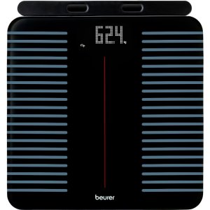 Osobní váha Beurer BF 990 Maximální nosnost 180 kg Přesnost vážení 100 g LCD displej Automatické vypnutí Materiál sklo Napájeno bateriemi Měří tělesný tuk, svalovou hmotu, BMI, metabolický věk Až 8 uživatelů …