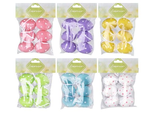 Sada 6 plastových kraslic o velikosti 60 mm přináší veselý puntíkovaný design, který dodá vaší velikonoční výzdobě hravý a svěží vzhled. Vajíčka jsou lehká, odolná a vhodná pro zavěšení na větvičky, dekorace, věnce nebo pro aranžování do košíčků či misek. Díky mixu barev krásně oživí každý prostor a skvěle ladí s ostatními jarními dekoracemi. Jsou ideální pro domácí výzdobu, tvoření s dětmi i pro rychlou a efektní dekoraci bez námahy. Zboží je dodáváno v mixu. Doručované zboží je vybíráno náhodně a nelze vybrat konkrétní provedení.
