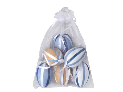 Elegantní sada 6 velikonočních kraslic o velikosti 60 mm je zdobena jemným proužkem, který dodává vajíčkům moderní a přitom tradiční vzhled. Kraslice jsou dodávány v krásném organzovém sáčku, díky kterému jsou připravené k okamžitému zavěšení nebo darování. Barevný mix vytváří pestrý a veselý efekt, ideální pro jarní výzdobu interiéru, větviček nebo velikonočních aranžmá. Stylová a vkusná dekorace, která oživí každé velikonoční svátky. Zboží je dodáváno v mixu. Doručované zboží je vybíráno náhodně a nelze vybrat konkrétní provedení.