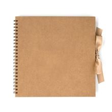 rozměr 30,5 x 30,5 cm 35 listů gramáže 180g/m2 pevné desky se saténovou stuhou k zavázání stejná barva desek a listů: kraft (tmavě hnědá) kroužková kovová vazba v hnědé metalické barvě (průměr kovové …