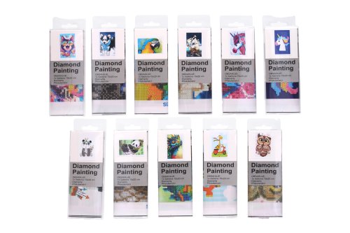 Kreativita diamond painting o velikosti 15x20 cm Mix motivů. Obsahuje: šablonu, diamanty + příslušenství. 12 různých motivů.