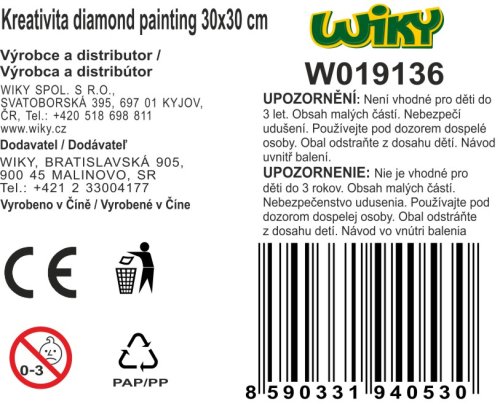 Kreativita diamond painting o velikosti 30x30 cm Mix motivů. 12 různých motivů.
