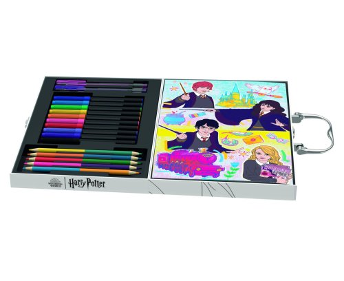 Kreativní kufřík obsahuje černobíle potištěný kufřík k vybarvení, 10 barevných fixů, 5 dvoubarevných pastelek, 2 gelové fixy, 2 gelová pera, sešit ke kreslení a list samolepek. Vhodné pro děti od 3 let.