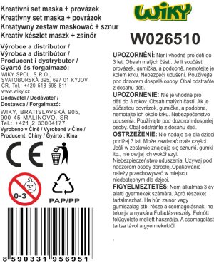 Kreativní set vytvoř si masku. Obsahuje: maska, provázek, ozdoby Různé barevní provedení