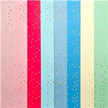 Blok obsahuje 12 listů kartónového papíru v 6 barvách a 3 listy pauzovacího papíru se vzorem zlatých teček