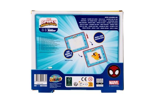 Kreativní podložka na vodní malování s oblíbeným hrdinou Spidey. Děti mohou pomocí speciálního vodního pera vybarvovat obrázky na podložce – po zaschnutí voda zmizí a mohou začít znovu.Opakovaně použitelná – žádné barvy ani nepořádek,snadno přenosná, vhodná na doma i na cesty.