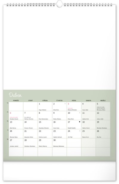 Kreativní rodinný kalendář je originální nástěnný kalendář, který dává prostor vaší fantazii. Každý měsíc nabízí volnou plochu, kterou si děti mohou ozdobit různými výtvarnými technikami - od kreslení pastelkami až po nalepení fotografií či vylisovaných květin. Vytvořte si jedinečný kalendář plný osobních vzpomínek a radosti, který potěší nejen vaši rodinu, ale také poslouží jako krásný dárek. Nabízí české kalendárum včetně státních svátků, jmenin a prostoru pro plánování aktivit s vaší rodinou.