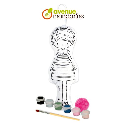 SADA OBSAHUJE:, * bavlněnou panenku Laureen s potiskem o velikosti 29 cm, * 6 kelímků s barvami, * 1 štětec, * bambulku k nalepení, VHODNÉ PRO DĚTI OD 6 LET., ROZMĚRY BALENÍ: 20 X 34 CM