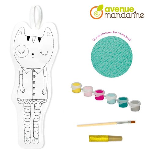 SADA OBSAHUJE:, * bavlněnou kočku Huguette s potiskem o velikosti 24 cm, * 6 kelímků s barvami, * 1 štětec, * tubu se třpytkami, VHODNÉ PRO DĚTI OD 6-10 LET., ROZMĚRY BALENÍ: 14 X 28 CM