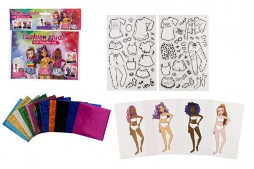 Sada pro holčičky, které se chtějí stát módními návrhářkami. Svým modelkám mohou navrhnout originální outfity za pomocí nálepek a fólií. Nejdříve nalepí vybraný model a na lepící stranu aplikují fólii s ozdobným vzorem. Balení obsahuje 8 modelek, 2 listy šablon oblečení, 12 barevných lepicích fólií. Modely můžete ozdobit doplňky, které jsou součástí. Rozměr sáčku: 23,5 x 23 cm Vhodné od 6 let
