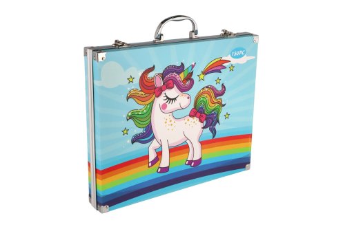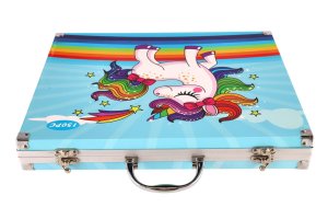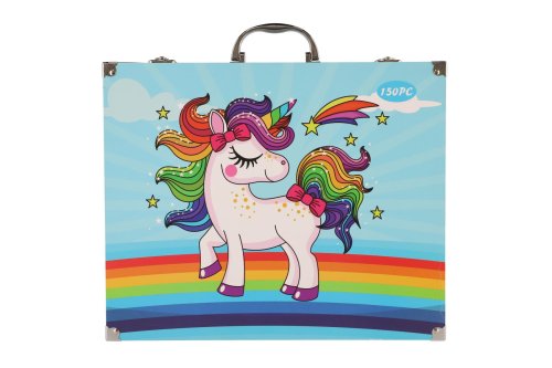 Probuďte svou kreativitu! Tento set obsahuje 150 různých pomůcek v praktickém kufříku s motivem jednorožce . Perfektní pro malování, kreslení a další umělecké aktivity. Ideální pro děti i dospělé. Rozměry kufříku: 36 x 31 x 5 cm Vhodné pro děti od 3 let