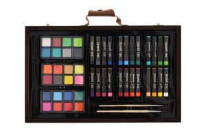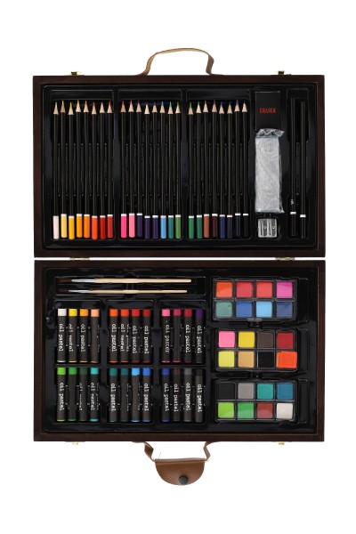 Kreativní výtvarný box, hodící se každému malému umělci, aby měl veškeré nutné potřeby přehledně v praktickém kufříku kdykoli u sebe! Kufr obsahuje pastelky, voskovky, grafitové tužky, vodové barvy, štětce, ořezávátko, gumu (celkem 79 ks). Rozměr boxu: 23,5 x 37,5 x 5 cm Není hračka