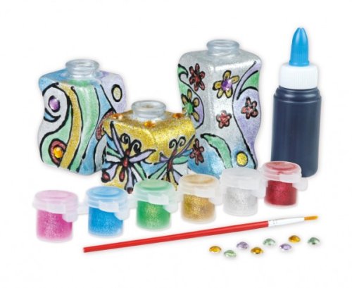 Chcete kreativně zabavit děti a zároveň jim dát prostor pro vytvoření dekorace do pokojíčku nebo dárečku pro někoho blízkého? Tato sada je přesně to, co hledáte! V balení naleznete 3 vázičky, 6 třpytivých barev, štětec, ozdobné kamínky a modelovací hmotu na obreslování tvarů. Fantazii se meze nekladou, vyzdob si vázičky podle svého gusta! Vhodné pro děti od 8 let