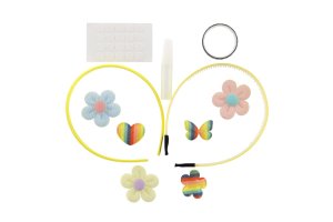 Originální sada, se kterou si děti mohou samy vytvořit krásné a jedinečné čelenky. Každé balení je malé překvapení – po otevření zjistíte, jaké barvy, ozdoby a doplňky uvnitř čekají. Výroba je jednoduchá a zábavná, takže se do ní mohou pustit děti už od 5 let. Obsah balení: 2 základní čelenky k ozdobení a různé dekorace a doplňky. Rozvíjí fantazii, kreativitu a jemnou motoriku. Vhodné jako dárek pro malé tvořivé parádnice.