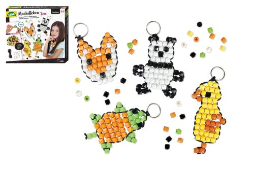 Kompletní sada pro výrobu 4 talismánků. Obsahuje 250 módních barevných korálků, černou šňůrku a 4 kroužky na klíče.