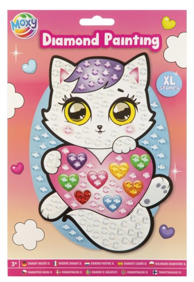 Kreativní set diamantové malování velikosti A5 obsahuje velké XL kameny/drahokamy, předlohu/obrázek, vosk k nalepení kamínků, pero k manipulaci s diamanty a lepení a tácek pro snazší roztřídění a práci. Na předlohu umísti kameny a vznikne nádherný diamantový obrázek kočičky, který bude zdobit tvůj pokojiček.