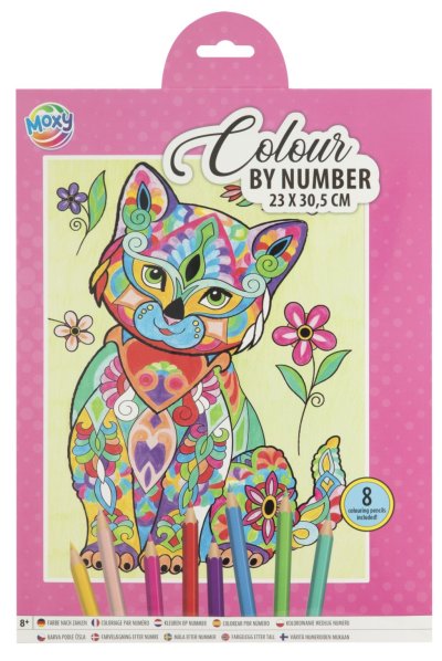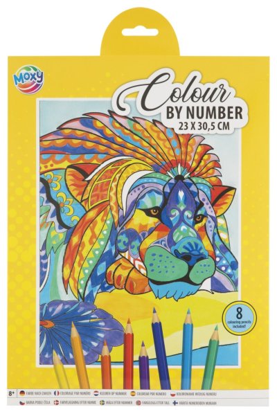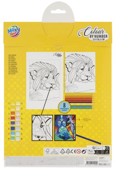 Kreativní set malování podle čísel obsahuje detailní obrázek o velikosti 23x30,5 cm a 8 různě barevných pastelek. Vymaluj místa na obrázku označená číslem přidělenou barvou podle návodu, až ti nakonec vznikne nádherně barevný obrázek majestátného lva