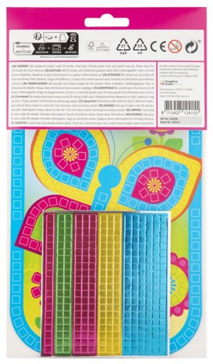 Kreativní set obsahuje jeden obrázek/předlohu a metalické pěnové nalepovací čtverečky, které se na předlohu lepí podle barvy a vznikne krásná mozaika. Velikost obrázku A5