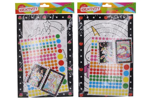 Kreativní set zábavné lepení o velikosti 20x34 cm. 2 různé obrázky v jednom balení. Mix obrázků.