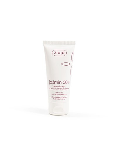 Exkluzivní olejová emulze proti vráskám s jasmínovým máslem a bohatou konzistencí pro každodenní péči o zralou pokožku rukou 50+. Jasmínové máslo obsahuje polynenasycené mastné kyseliny, zejména kyseliny linolové a kyseliny linolenové. Má vysokou výživnou hodnotu a přirozenou regenerační schopnost, která poskytuje pokožce ideální stav. Jasmínové máslo napravuje funkce kožní bariéry, zlepšuje pružnost, zřetelně vyhlazuje, zvlhčuje a rozjasňuje pokožku a v důsledku toho působí proti stárnutí.Krém na ruce účinně reaguje na přirozené požadavky všech typů zralé pleti. Kompenzuje ztrátu kolagenu, fyziolipidů a kyseliny hyaluronové.Obsahuje fytoestrogen - genistein - izoflavon s účinkem podobným hormonům, vápník - hlavní faktor v regeneraci epidermis a bambucké máslo - aktivní zesvětlující složka a přírodní UV filtr. Rychle se vstřebává. I. Obnova přirozené struktury pokožky - oligopeptidy (mikro-kolagen) , genistein účinně posilují kolagenová a elastinová vlákna, zajišťují správné zesítění proteinových vlákem, výrazně zvyšují hustotu pojivové tkáně, dokonale zpružňují a zabraňují ztrátě elasticityII. Redukce ochabování pleti a vyhlazení vrásek - vápník, kyselina hyaluronová a liftingující proteiny regenerují pokožku, snižují hloubku povrchových i hlubokých vrásek, zabraňují ochabování pokožky, trvale hydratují, a to i hlubší vrstvy pokožky, snižují napětí a drsnostIII. Regenerace epidermis - jasmínové máslo, skvalen, esenciální mastné kyseliny z olivového, bavlníkového a makadamiového oleje regulují ochrannou funkci pokožky, doplňují nedostatek lipidů, výrazně vyživují, zjemňují a regenerují svrchní vrstvu pokožkyIV. Zlepšení barvy - kakaové máslo vyrovnává nerovnoměrné zabarvení pokožky, zaručuje zdravý, přirozený vzhled