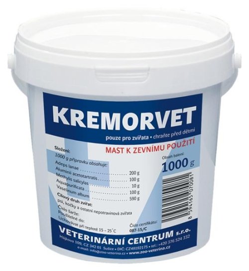Krém napomáhá při hojení drobných poškození kůže a při předcházení otoků po bodnutí hmyzem, kde se současně uplatňuje jeho protisvědivý účinek. Přípravek lze používat jako podpůrný prostředek též při zánětech kůže, při ozáření a popáleninách, na omrzliny, jako ochranu před vznikem opruzenin a proleženin, při lehkých zhmožděninách měkkých tkání. Vhodné pro psy a kočky. Určeno pouze pro zvířata. Složení: 1 000 g přípravku obsahuje: Adeps lanae 200 g, Aluminii acetotartratis 100 g, Methylis salicylas 10 g, Aquapurificata 100 g, Vaselinum album 590 g. Dávkování a způsob podání: Veterinární přípravek aplikujeme v tenké vrstvě na postižená místa 1–3 x denně. Upozornění: Nepoužívat v případě přecitlivělosti na účinnou látku nebo na některou z pomocných látek. Přípravek je všeobecně velmi dobře snášen. V případě přecitlivělosti na některou složku přípravku mohou vzniknout alergické reakce. Zvláštní upozornění: Účinná látka přípravku se nesnáší s kožními přípravky obsahujícími tanin, soli stříbra (nejčastěji argentum nitricum), acriflavinum chloratum, aethacridinum lacticum. Balení: 1 kg