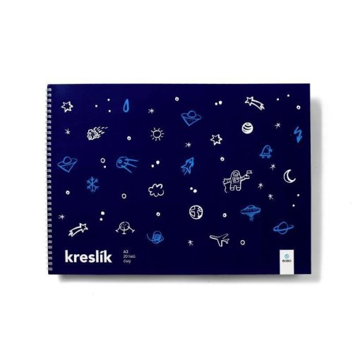 Vesmírný Kreslík A3 obsahuje 20 listů a je určen všem dětem, které rády kreslí a malují. Je vhodný pro kreslení a malbu tužkami nebo pastelkami. <br> <br> Tento vesmírný Kreslík bude bavit všechny malé výtvarníky. Papír je vhodný pro malbu obyčejnou tužkou, pastelkami nebo uhlem. <br> <br> Kreslicí blok Svět A3 <br> • Formát: A3 <br> • Počet listů: 20 <br> • Papír: 100 g <br> • Lineatura: Čistá <br> • Vazba: Kroužková dvojitá Twin Wire