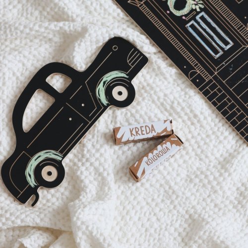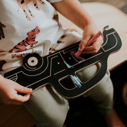 Dřevěná tabulka se 4 křídami rozvíjí grafomotorické dovednosti, podporuje kreativitu a fantazii.