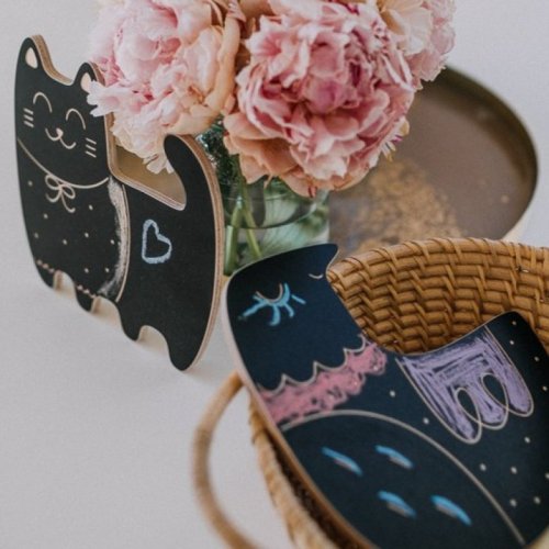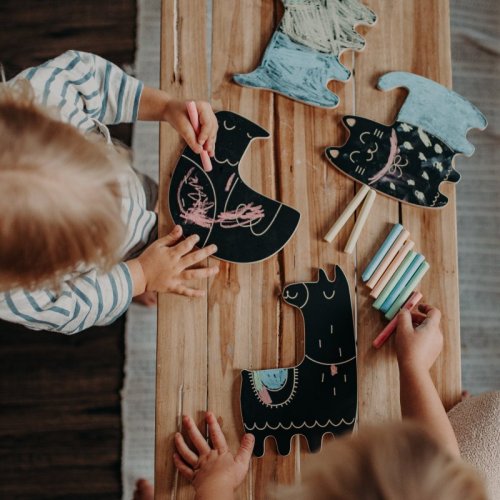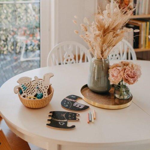 Dřevěná tabulka se 4 křídami rozvíjí grafomotorické dovednosti, podporuje kreativitu a fantazii.