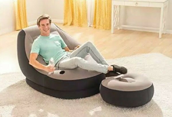 Nafukovací křeslo s podnožkou k domácímu a venkovní použití pro chvíle odpočinku.