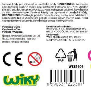 3kusů barevných chodníkových kříd v pevném plastovém boxu s víčkem a držadlem pro přenášení.