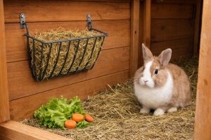 Závěsné jesle klasické malé s horním plněním pro králíky.