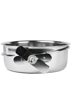 Nerezové krmítko pro exoty na ovoce, grit, zrní či pamlsky.