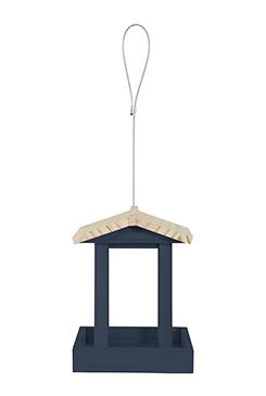Závěsné krmítko na semena (650g) z certifikovaného borovicového dřeva a kovovým lankem pro větší odolnost. Vrchní plnění přes otvíratelnou stříšku.