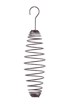 Závěsné kovové krmítko ve tvaru spirály na 4 lojové koule. Výška spirály 22cm. Dodáváno bez koulí.