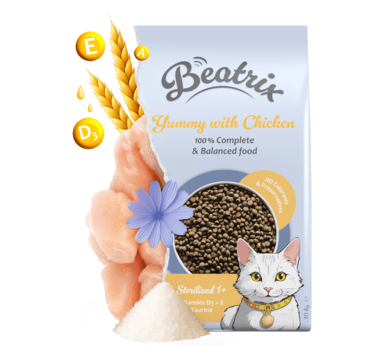 Sterilizované kočky mají nižší energetickou potřebu – toto krmivo má upravený obsah tuku a vyšší podíl vlákniny pro kontrolu hmotnosti.