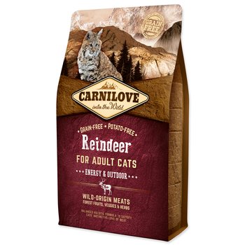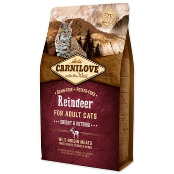 Carnilove Reindeer - holistické krmivo pro dospělé kočky s přístupem k venkovnímu prostředí. Kompletní krmivo pro kočky ze soba, bez obilovin a brambor. Dospělé kočky potřebují pro udržení kondice potravu bohatou na kvalitní bílkoviny s dostatečným a vyváženým obsahem potřebných aminokyselin. Carnilove Reindeer for Adult Cats je navržen s respektem k přirozené skladbě potravy koček. Sobí maso je vzhledem k vysokému obsahu přírodních antioxidantů, nenasycených tuků a omega-3 mastných kyselin ideální pro doplnění energie po každém kočičím dobrodružství. V kombinaci s lesním ovocem, zeleninou a bylinami poskytuje tato receptura každodenně potřebné živiny, vitaminy, minerály a antioxidanty pro perfektní kondici a formování přirozené imunity. Složení: Sobí maso (28 %), kančí masová moučka (28 %), žlutý hrách (18 %), kuřecí tuk (chráněno tokoferoly, 13 %), kuřecí játra (4 %), tapiokový škrob (2 %), lososový olej (2 %), jablka (1 %), mrkev (1 %), lněné semínko (1 %), cizrna (1 %), hydrolyzované skořápky korýšů (zdroj glukosaminu, 0,026 %), extrakt z chrupavek (zdroj chondroitinu, 0,016 %), pivovarské kvasnice (zdroj mannan-oligosacharidu, 0,016 %), kořen z čekanky (zdroj frukto-oligosacharidu, 0,012 %), juka schidigera (0,01 %), mořská řasa (0,01 %), psyllium (0,01 %), tymián (0,01 %), rozmarýn (0,01 %), oregano (0,01 %), brusinky (0,0008 %), borůvky (0,0008 %), maliny (0,0008 %). Nutriční doplňkové látky v 1 kg: vitamin A (E672) 23,000 IU, vitamin D3 (E671) 940 IU, vitamin E (3a700) 650 IU, vitamin C (E300) 300 mg, taurin 2,400 mg, cholinchlorid 2,200 mg, L-karnitin 65 mg, niacin 45 mg, biotin 1.8 mg, zinek (E6) 150 mg, mangan (E5) 55 mg, železo (E1) 48 mg, měď (E4) 11 mg, jód (E2) 3.8 mg, selen (E8) 0,23 mg, DL-methionin (3.1.1.) 14 mg, arginin (3c3.6.1) 12 mg, L-lysin (3.2.3.) 10 mg.