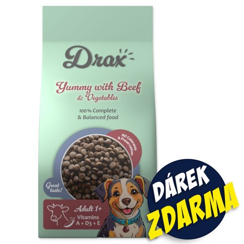Krmivo Drax Adult s hovězím a se zeleninou 3kg+Konzerva Drax Adult s hovězím a drůbežím 415g