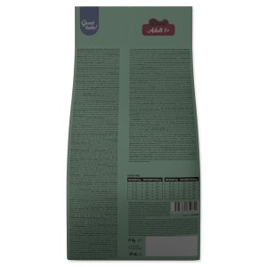 | Složení: | Obilniny, maso a výrobky živočišného původu (z toho sušené hovězí 20 %), vedlejší výrobky rostlinného původu (z toho sušená čekanka 0,2 %), ryby a vedlejší výrobky z ryb, zelenina (z toho hrášek 4 %), oleje a tuky, semínka, minerální látky. |