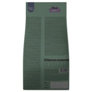 | Složení: | Obilniny, maso a výrobky živočišného původu (z toho sušené jehněčí 4 %), vedlejší výrobky rostlinného původu (z toho sušená čekanka 0,2 %), ryby a vedlejší výrobky z ryb, zelenina (z toho hrášek 4 %), oleje a tuky, semínka, minerální látky. |