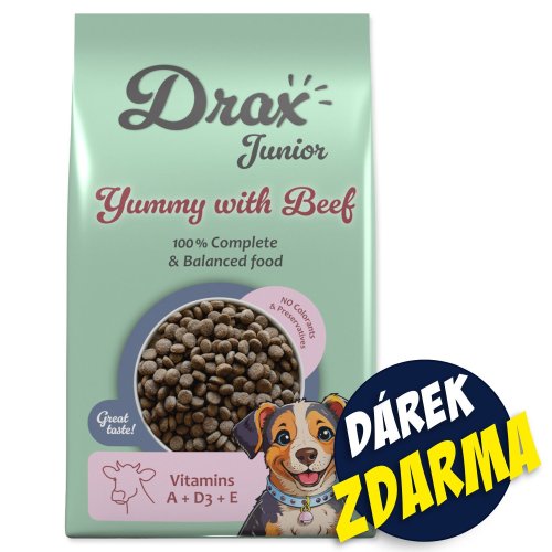 Krmivo Drax Junior s hovězím 10+3kg ZDARMA