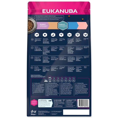 Eukanuba Grain Free* receptura pro dospělé psy malých a středních plemen s nízkým obsahem alergenů je pečlivě sestavená tak, aby krmivo neobsahovalo běžné alergeny. Šetrné složení představuje alternativu pro psy se zvláštními nutričními požadavky, která obsahuje nezbytné vitamíny a minerály pro zdravý život vašeho psa.