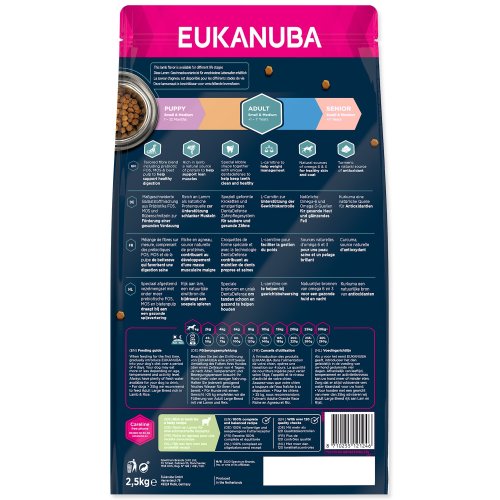Jehněčí maso představuje velmi dobře stravitelnou výživu, vhodnou i pro citlivé psy. Krmivo značky Eukanuba poskytuje optimální denní dávku proteinů, tuku, karbohydrátů, důležitých vitamínů a minerálů pro zdraví a pohodu vašeho psa. Obsahuje přísady vysoké kvality a velké množství živočišných proteinů.