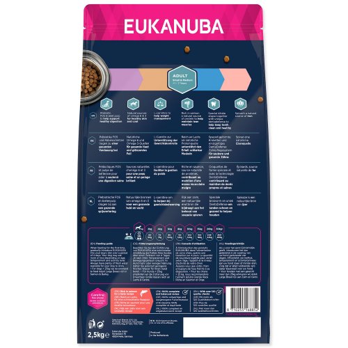 100% kompletní a vyvážené krmivo pro dospělé psy malých a středně velkých plemen, upřednostňujících krmivo s masem z lososa pro snadné trávení a vynikající stav kůže a srsti.