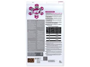 Hrubé proteiny 27%, vlhkost 8%, tuky 12%, hrubé popeloviny 7,4%, hrubá vláknina 2,6%, vápník 1,35%, fosfor 1%, omega-3 mastné kyseliny 0.35%, omega-6 mastné kyseliny 2.07%, vitamín A 45375 m.j./ kg, vitamín D3 1506 m.j./ kg, vitamín E (alfatokoferol) 252 mg / kg, L–karnitin 48,2 mg / kg, betakaroten 5 mg / kg. Metabolizovatelná energie: 3470 kcal / kg.